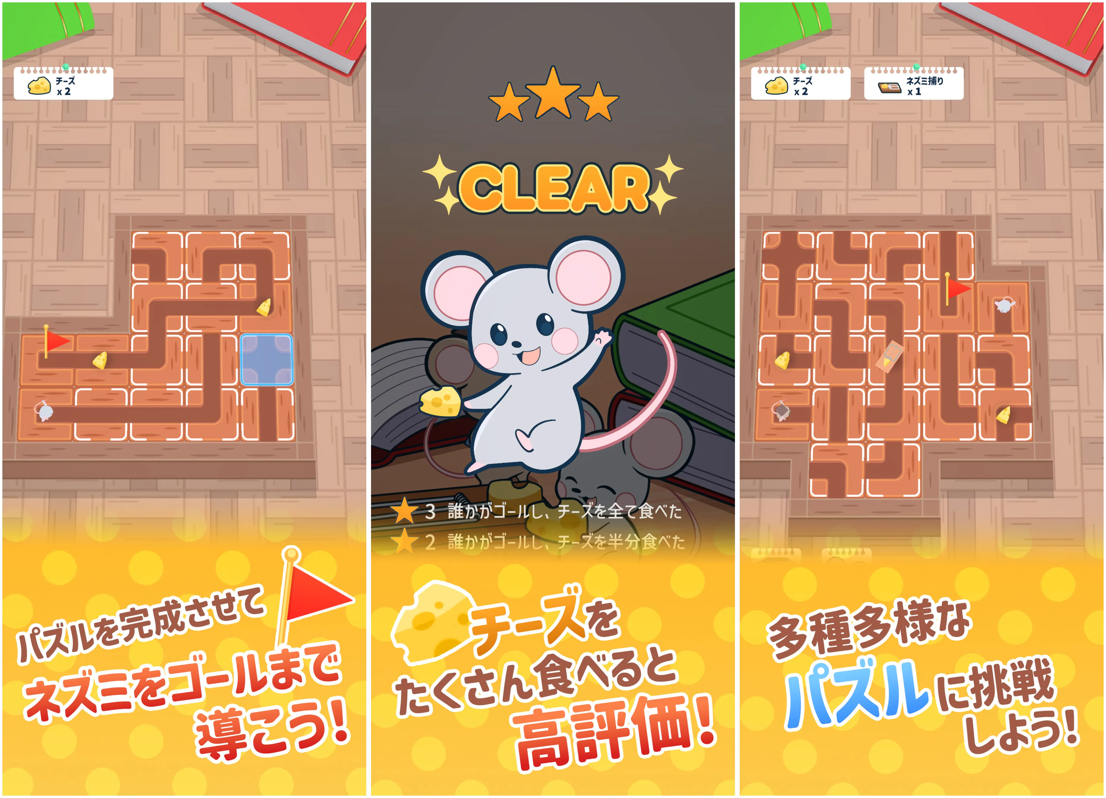 フレイムスタジオにて、ハイパーカジュアルなパズルゲームの『メイちゅー』をios android向けにリリースしました。可愛らしいねずみたちがチーズを食べられるように、パズルを並び替えてルートを完成させてあげよう!多様なパズルの数々があなたを待っています。